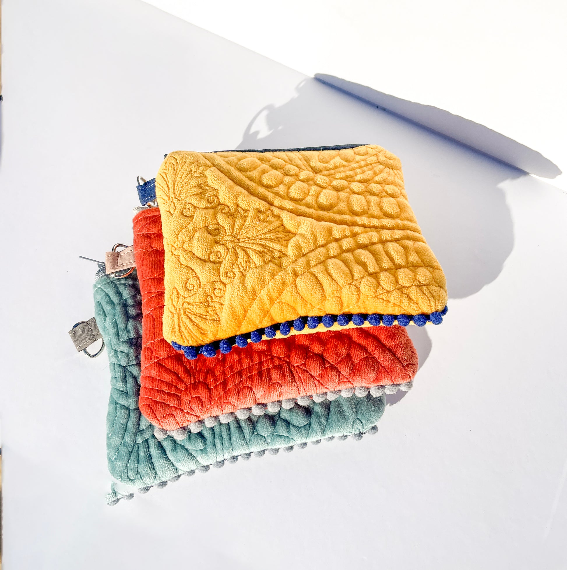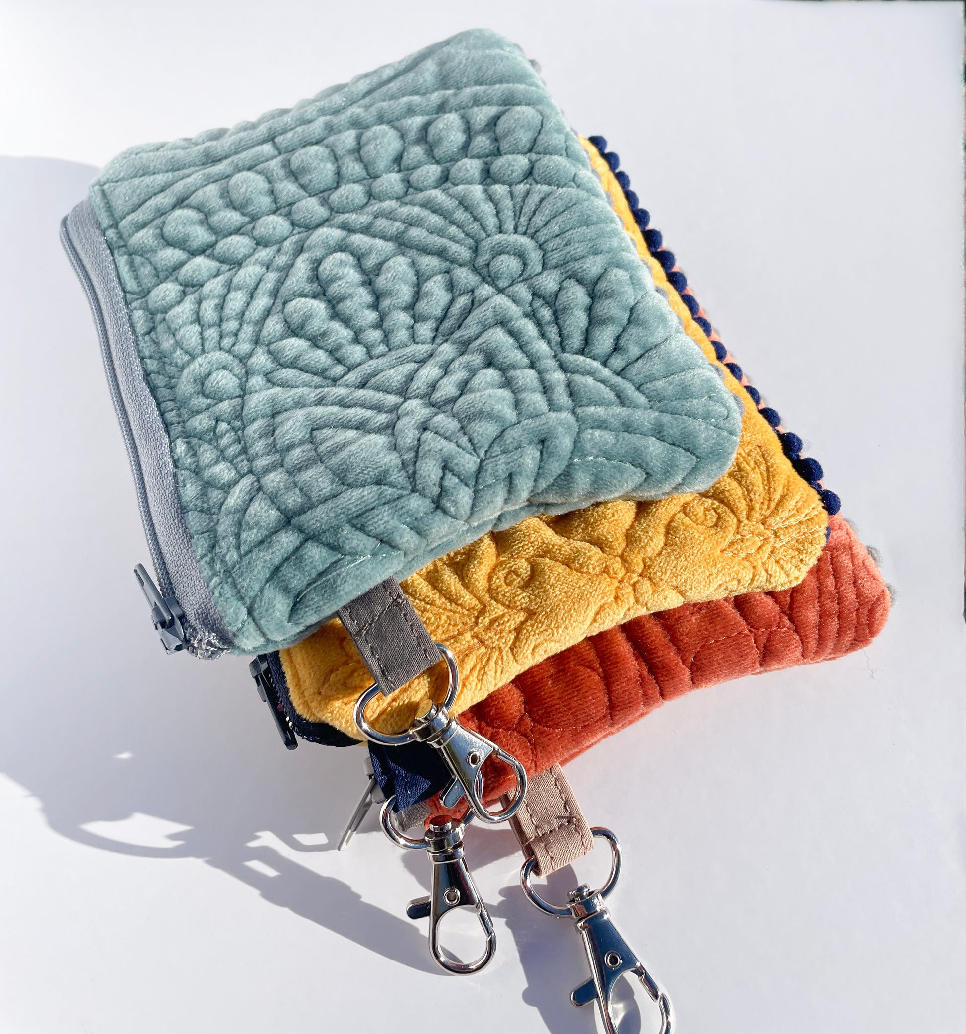 3 Plush Mini Coin Purses - perfect to hold you money, credit card debt and your drugs all in one place. 3 Colors- Mauve, Golden Yellow, Turquoise. Dingle balls included bruh.